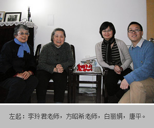 2月10日下午,尊师基金执委会委员唐平和学院校友会白丽娟一起去看望了方昭希老师。今年3月23日是方老师80岁生日,由于届时她不在国内,所以经方老师同意,探望组提前为方老师祝寿。