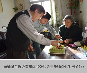 在2012年的最后一天,尊师基金的执委罗建沅、张泳和秘书处白丽娟老师来到王季麟老师家中为她庆祝八十岁生日。