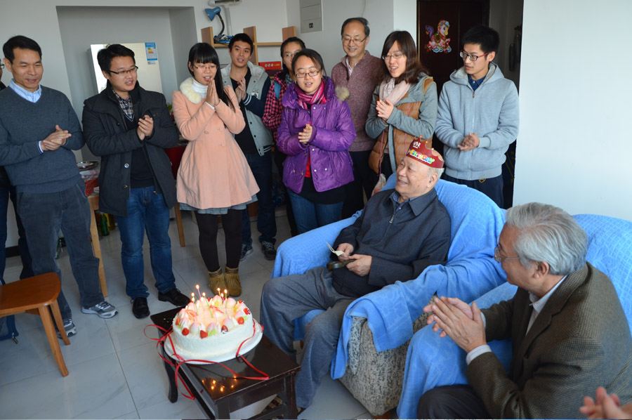 2014年12月11日是学院吴相钰老师90岁生日。当天上午,原北京大学校长许智宏教授、北京大学生命科学学院瞿礼嘉、白书农、范六民、董春霞等多位老师与学院校友尊师基金代表陈菁、周玲、刘超以及十余名在校研究生、本科生等一道,来到五道口嘉园吴相钰老师家中,为其庆生。