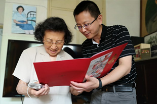 师生一行刚进门,即受到了李老师的热情接待。学院院党委书记、校友尊师基金执委会主任刘德英,代表学院师生校友并广大捐赠人,首先为李静涵老师送上了写满祝福的生日贺卡。众人落座交谈中,李老师显得十分兴奋,特意拿出了珍藏多年的老相册(其中就包括有其爱人陈德明教授在内的1950年8月31日乘美国总统轮船公司的“威尔逊总统号”回国的留美学者、学生的合影),并向大家逐一介绍着每张照片背后所记录的半个多世纪的风风雨雨与人物故事。当得知这其中的大部分照片竟是李老师亲自拍摄之时,众人眼中纷纷投来钦佩的目光。